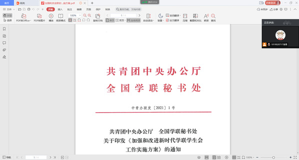 为深入贯彻习近平总书记致全国青联十三届全委会和全国学联第二十七次代表大会的贺信和党中央致词精神,全面落实全国学联二十七大确定的各项工作部署,加强和改进新时代学联员工会工作,太阳成集团tyc234cc、微电子公司研究生会于2月22日18:30,组织全体成员学习《加强和改进新时代学联员工会工作实施方案》重要文件精神,会议由研究生会主席李昊主持。