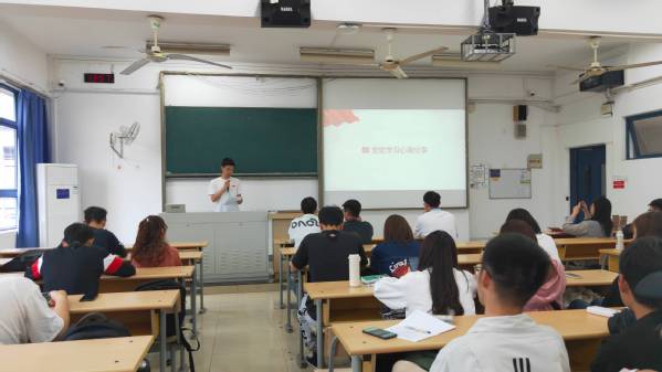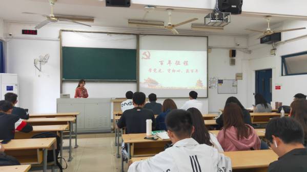 活动在国歌声中拉开序幕。首先,参会人员共同观看了“同上党史思政大课”节选视频,在赵朝峰教授的讲授下对党史有了进一步认识。接着,2019级两位员工代表张泰来、张宇轩分别进行党史学习分享,从1921年建党至2021年百年华诞,两位同学激情豪迈地向大家讲述了个人学习历程与心得体会。随后,主持人开展活动第三部分党史知识竞答,全体成员踊跃抢答,气氛高涨。