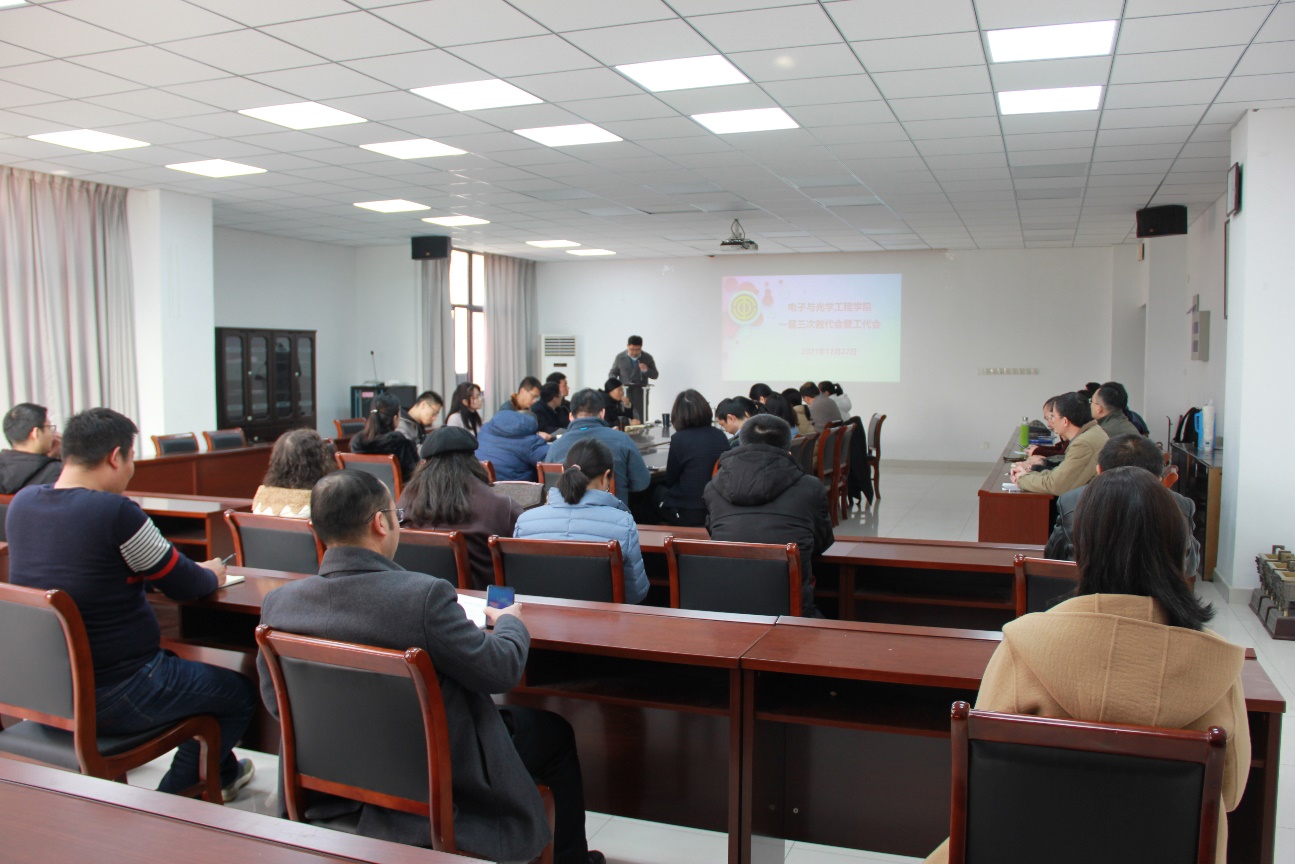 2021年12月22日下午,太阳成集团tyc234cc在电光学科楼A327召开一届三次教职工代表大会,会议由公司党委副书记高翔主持。