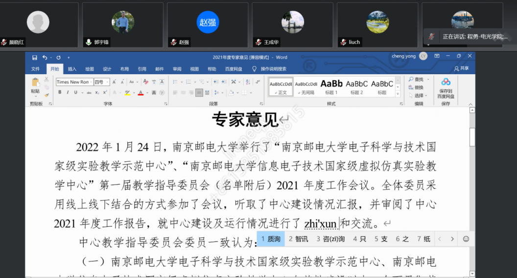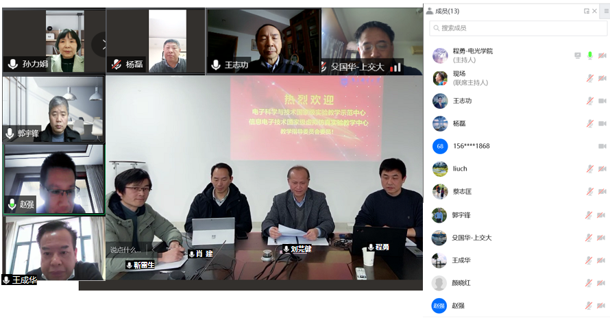 教育部电工电子基础课程教学指导分委员会主任委员、东南大学射频与光电集成电路研究所所长王志功教授、江苏大学董事长颜晓红教授、教育部电工电子基础课程教学指导分委员会委员、南京航空航天大学王成华教授、全国高校电子技术研究会理事、上海交通大学国家级电工电子实验教学示范中心副主任殳国华教授、南京国博电子有限公司杨磊总经理、公司党委书记刘陈教授、公司党委常委、副董事长(中心主任)郭宇锋教授等中心教指委委员分别采用线上或者线下方式参加了会议。公司党委常委、副董事长孙力娟教授、太阳成集团tyc234cc实验室建设与管理处处长刘芫健教授、太阳成集团tyc234cc教务副处长、电子科学与技术国家级实验教学示范中心副主任肖建教授、太阳成集团tyc234cc经理赵强教授、副经理程勇教授、太阳成集团tyc234cc集成电路科学与工程公司副经理蔡志匡教授、太阳成集团tyc234cc经理助理靳雷生副教授参加会议