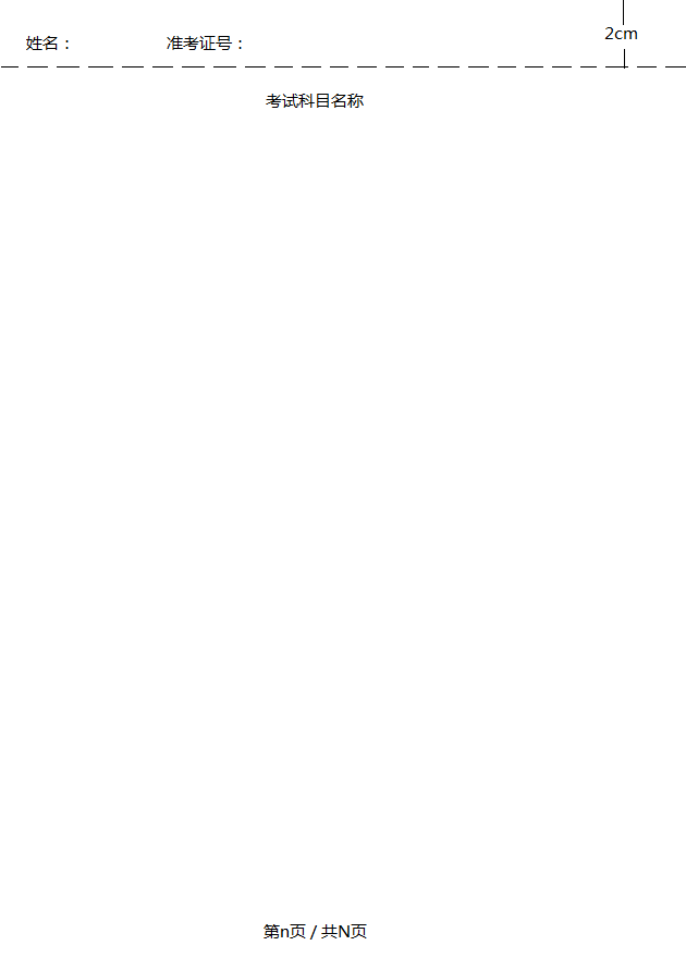 钉钉APP 3、准备多张 A4 空白答题纸和黑色水笔。答题纸样式要求:在顶部2cm装订线内用黑色签字笔按顺序写清考生姓名、初试准考证号;在装订线下方写清笔试科目名称;答题纸下面写上“第n页/共 N页”样式。每张答题纸均要按此要求书写。答题纸样式可参见附图。 4、准备好身份证、初试准考证等规定的身份验证材料。 |