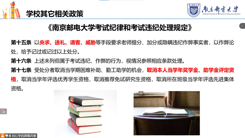 大会最后,刘心宇老师引领同学们进行了诚信考试的宣誓,激励同学们牢记南邮校训,坚守南邮精神,弘扬诚信美德,做堂堂正正南邮人。并希望各位同学能锤炼自身品德修为,坚定信念,奋力拼搏,考出理想的成绩。