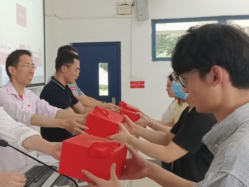 本次仪式分为微党课、忆初心、唱红歌、温誓词、赠礼物、送寄语六个部分。微党课同学们集体观看了一段习近平总书记关心关怀当代青年老员工发展的视频,学习习近平总书记给南京大学留学归国青年学者重要回信精神和习近平总书记在中国人民大学考察时重要讲话精神。“清澈的爱,只为中国”,应当成为当代中国青年发自内心的最强音。实现中国梦是一场历史接力赛,当代青年要在实现中华民族伟大复兴的赛道上奋勇争先。回忆入党初心宋子晨、张泰来作为员工党员代表围绕“如何践行初心使命”主题进行发言。宋子晨说到,员工党员应当抓住“思想政治学习”,抓实“坚定理想信念”,抓牢“全心全意为人民服务”,艰苦奋斗,做新时代的追梦人。张泰来表示,初心很单纯,使命很宏大。牢记初心使命需要我们不断自省修身律己将坚定信仰化作勇毅前行的强大动力接着,大家齐唱《国际歌》,重温入党誓词。同志们有力的嗓音,铿锵的宣誓,表达了对党的无限忠诚,进一步激发了爱党爱国的热情。随后,支部党员们收到了“政治生日”留念杯及“政治生日”电子贺卡,激发了大家不忘初心,砥砺前行。最后,吴进老师为在座的员工党员送上“政治生日”寄语。他提到,大家应牢记习近平总书记的嘱托,“江山就是人民,人民就是江山”,应深刻把握马克思主义的人民性和中华文化民本思想的精髓。他希望,在座的党员同志们经常开展批评与自我批评,有利于自我审视、自我调整、自我教育、自我提高、自我完善。