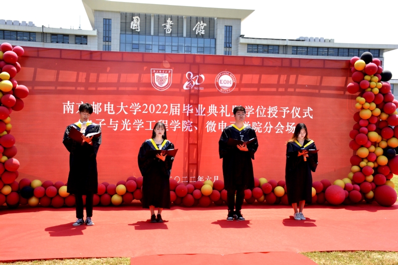 求知路遥,蒙师引领,饮水思源,语短情长。2022届毕业生叶海宁、赵妍、李俊锋、朱月明四位同学代表全体毕业生朗诵了由公司毕业生们集体撰写的《路虽远行则将至——致母校的一封信》。“我眷恋着您,因为那一草一木饱含深情”“我眷恋着您,因为这师生亲友温柔和煦”“我眷恋着您,因为我在南邮恣意生长,在南邮受益匪浅”“我眷恋着您,因为物,因为人,更因为您那傲人的精神与品格”。同学们用最真挚的情感、最动人的声音、最暖心的祝福,告白公司、告白公司、告白青春!