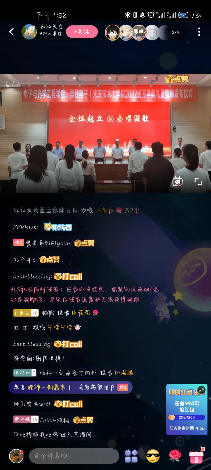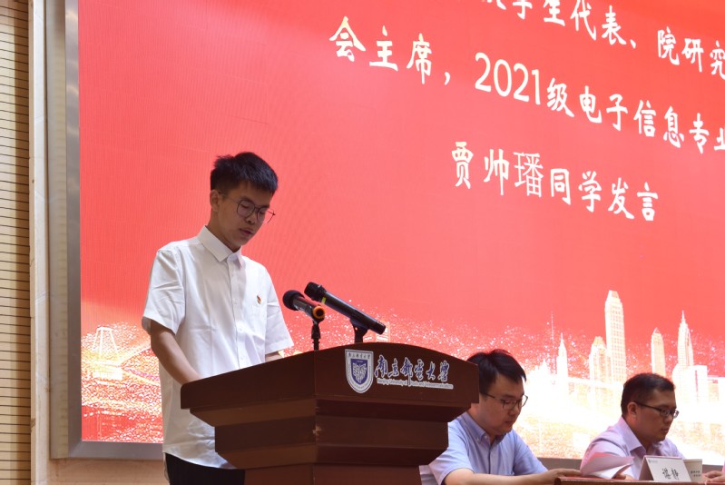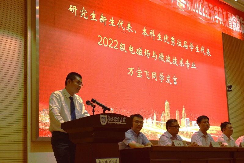 之后研究生高年级员工代表、院研究生会主席,2021级电子信息专业贾帅璠同学、研究生新生代表、本科生优秀往届员工代表,公司2022级电磁场与微波技术专业万宝飞同学、本科生新生代表,2022级电子科学与技术专业创新班刘姮婧同学依次发言,用多彩的文字、不同的言语表达了对新生一致的诚挚祝福,抒发了对未来生活的憧憬期盼,鼓励了同学们树立开学新风貌。