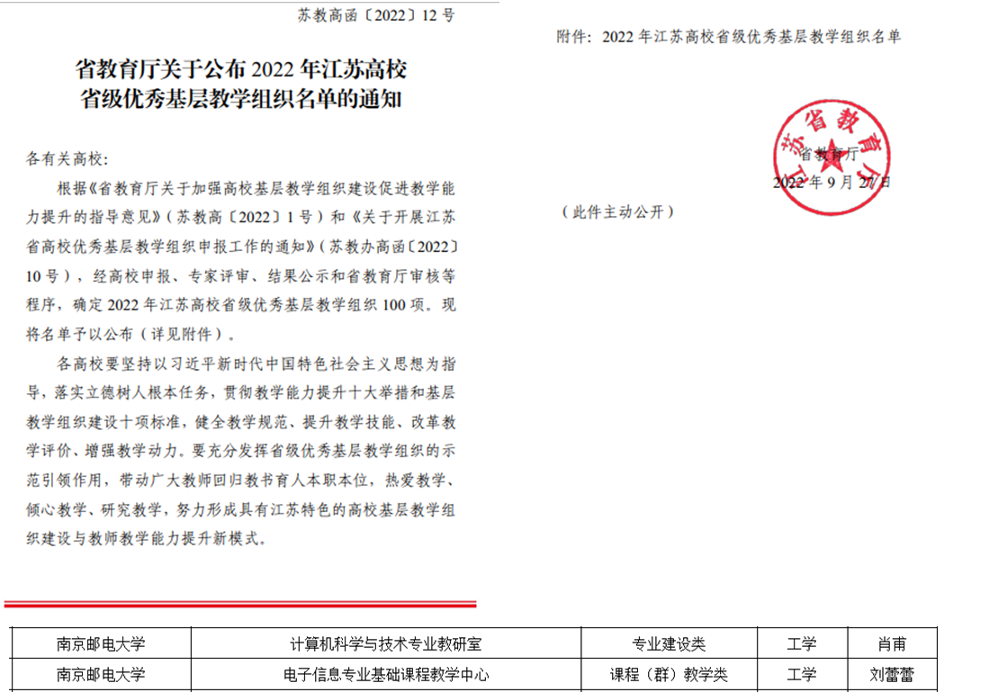 近日,省教育厅公布了2022年江苏高校省级优秀基层教学组织评选结果,公司“电子信息专业基础课程教学中心”是公司成功入选的两个基层教学组织之一。