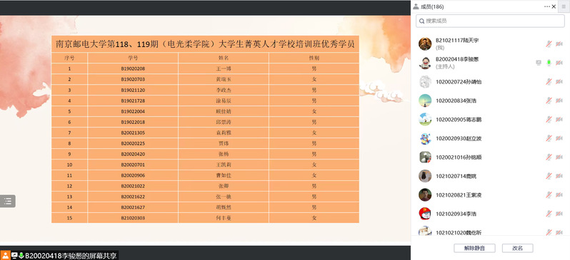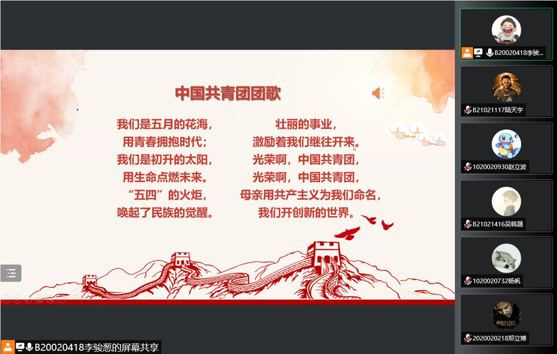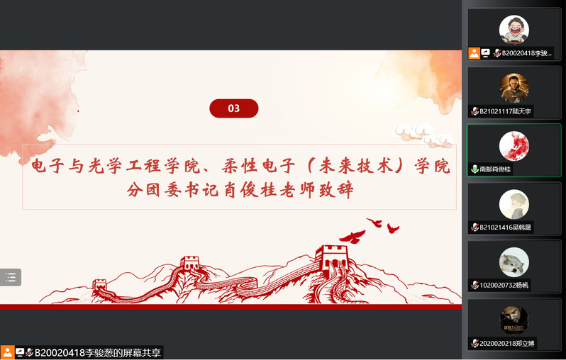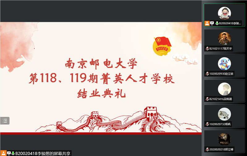 为促使学员们不忘初心、牢记使命,传承红色基因,坚定爱党爱国信念,将自身的责任与担当同党和国家事业联系起来,踔厉奋发,赓续前行。10月10日晚,太阳成集团tyc234cc正式举行第118、119期菁英人才公司结业典礼。本次会议由分团委秘书处李骏葱同学主持,院分团委书记肖俊桂老师、2020级辅导员刘振老师出席,全体菁英人才公司学员参会。