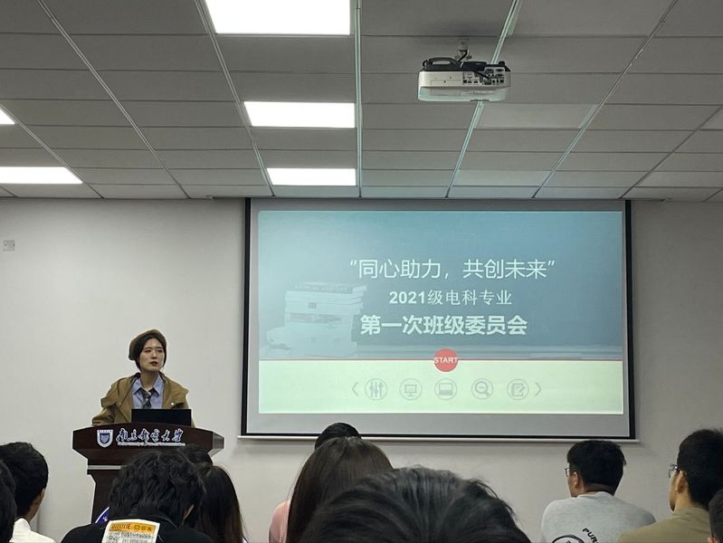 紧接着,是班委名单的公布展示,随后,各班班长和团支书向大家介绍自己,让所有人熟悉认识,以方便后期工作交流,让大家更好地配合。随后班长代表宋明航和新上任班委张子卫依次发言,鼓动大家在往后工作中同心协力,相处融洽,以为班级服务,提升班级学习氛围和带动同学参与活动,一同建设好电子科学与技术专业为共同目标,为接下来一年里班委间的共事协作打下基础。