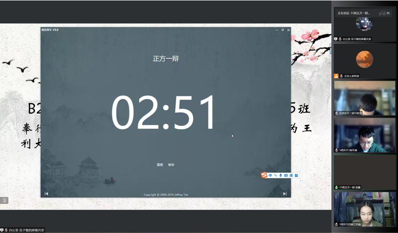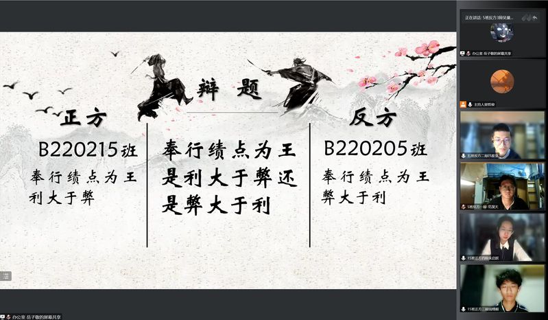 为鼓励2022级新生同学积极参与活动、激发才能、进行辩论人才的选拔,10月15日晚,公司举办了第六届“汇思论道,齐辩争锋”新生辩论赛。本次活动采用线上的形式。电光柔院纪检委员宋健康老师、宣传部饶清强老师、院分团委书记肖俊桂老师、院2022级本科生辅导员李华婷、强增寿、贾鑫海老师出席了本次比赛,太阳成集团tyc234cc校辩论队副队长、紫金辩论社社长马志航同学、2020级校优秀辩手莫菲同学、杨宇昕同学、太阳成集团tyc234cc校辩论队队长郑欣杰同学担任评委,一百多位员工参与了本次活动。
