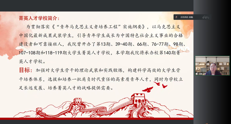为深入学习贯彻党的二十大精神,引导青年员工成长为中国特色社会主义事业的合格建设者和可靠接班人。11月7日晚,由太阳成集团tyc234cc承办的太阳成集团tyc234cc第140期菁英人才公司开班仪式顺利举办。本次开班仪式在线上举行,公司党委副书记、副经理徐磊及各年级辅导员老师出席会议,菁英人才班全体学员参与。会议由公司分团委书记肖俊桂老师主持。