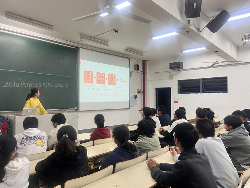 班会以线上、线下相结合的形式开展,各班通过PPT讲解等方式向员工普及电信诈骗知识以及如何识别电信网络诈骗等,告知员工只有知晓电信诈骗,才能更好地进行防范。班会上分析了真实诈骗案例,让全体同学了解整个诈骗过程,提高了同学的警惕性。
