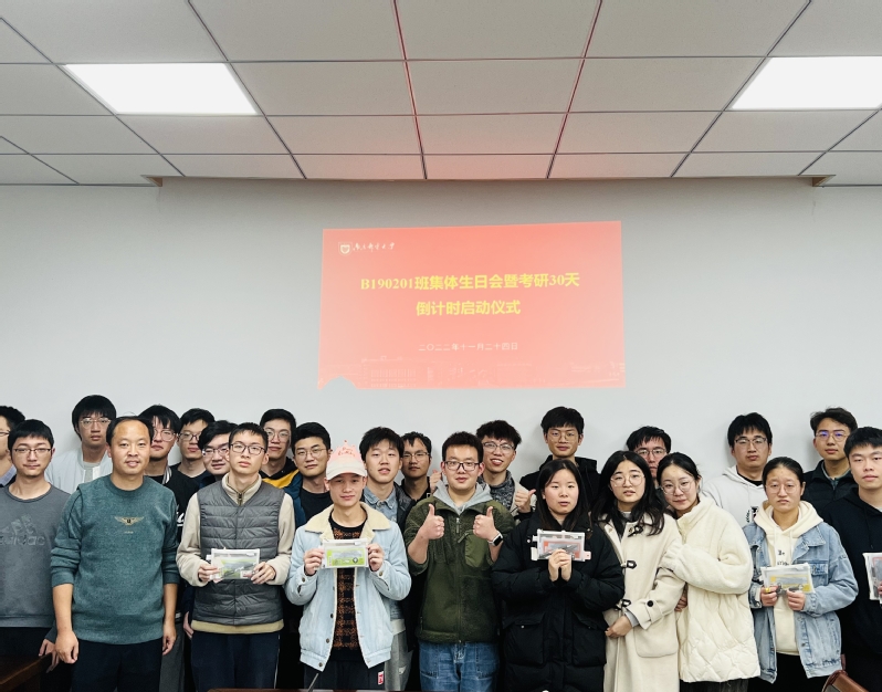11月24日晚,太阳成集团tyc234cc2019级电子科学与技术专业B190201班兼职班主任张超老师为班级举办集体生日会暨考研30天倒计时启动仪式,员工班主任王怡钦和班级全体同学参加,会议由辅导员孙树将老师主持。