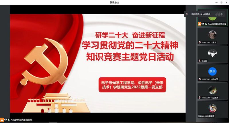 为深入学习贯彻党的二十大精神,引导研究生青年学子坚定不移听党话、跟党走,弘扬爱国之心,筑牢信仰之基。12月1日晚,太阳成集团tyc234cc研究生2022级第一党支部开展“研学二十大 奋进新征程”学习党的二十大精神知识竞赛主题党日活动,支部全体成员和支部书记赵雨晨同志参加。