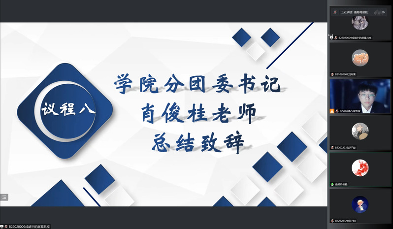 电光柔院分团委书记肖俊桂老师作总结发言,她高度认可了员工会同学们的奉献精神和服务意识,期望同学们在逆境中寻求新的变化,有清晰的自我定位,具有思辨能力,提高自我能力,丰富老员工活,不负初衷,感受老员工活的魅力。