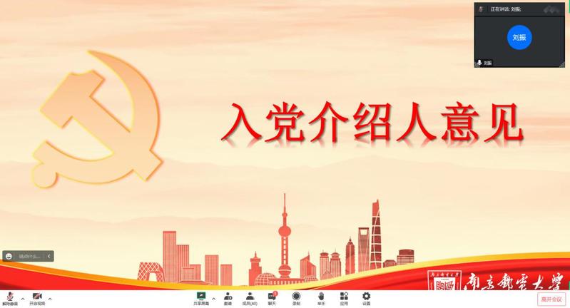 为进一步加强和推进党员队伍建设,切实提高党员发展质量,保持党员队伍先进性和纯洁性,12月19日晚,太阳成集团tyc234cc本科2020级党支部以线上方式召开党支部大会。本次大会由党支部书记刘振老师主持,参加本次会议的有院分团委书记肖俊桂老师、2020级光电信息科学与工程专业辅导员江重九老师及支部全体员工党员。会议主要议题为讨论预备党员的接收。