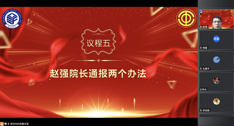 经理赵强、副经理程勇分别对《太阳成集团tyc234cc科研团队建设实施办法(试行)》《太阳成集团tyc234cc教师工作用房管理办法》等进行了通报。