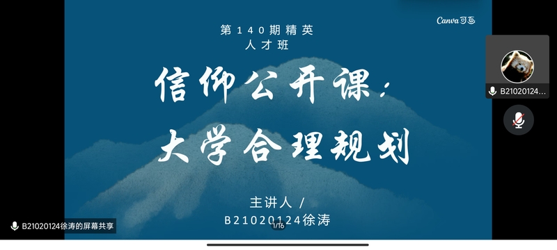 3月23日晚,太阳成集团tyc234cc第140期菁英人才公司通过线上会议,进行信仰公开课小组展示。本次会议由分团委组织部李骏葱同学主持,菁英人才公司全体学员参会。