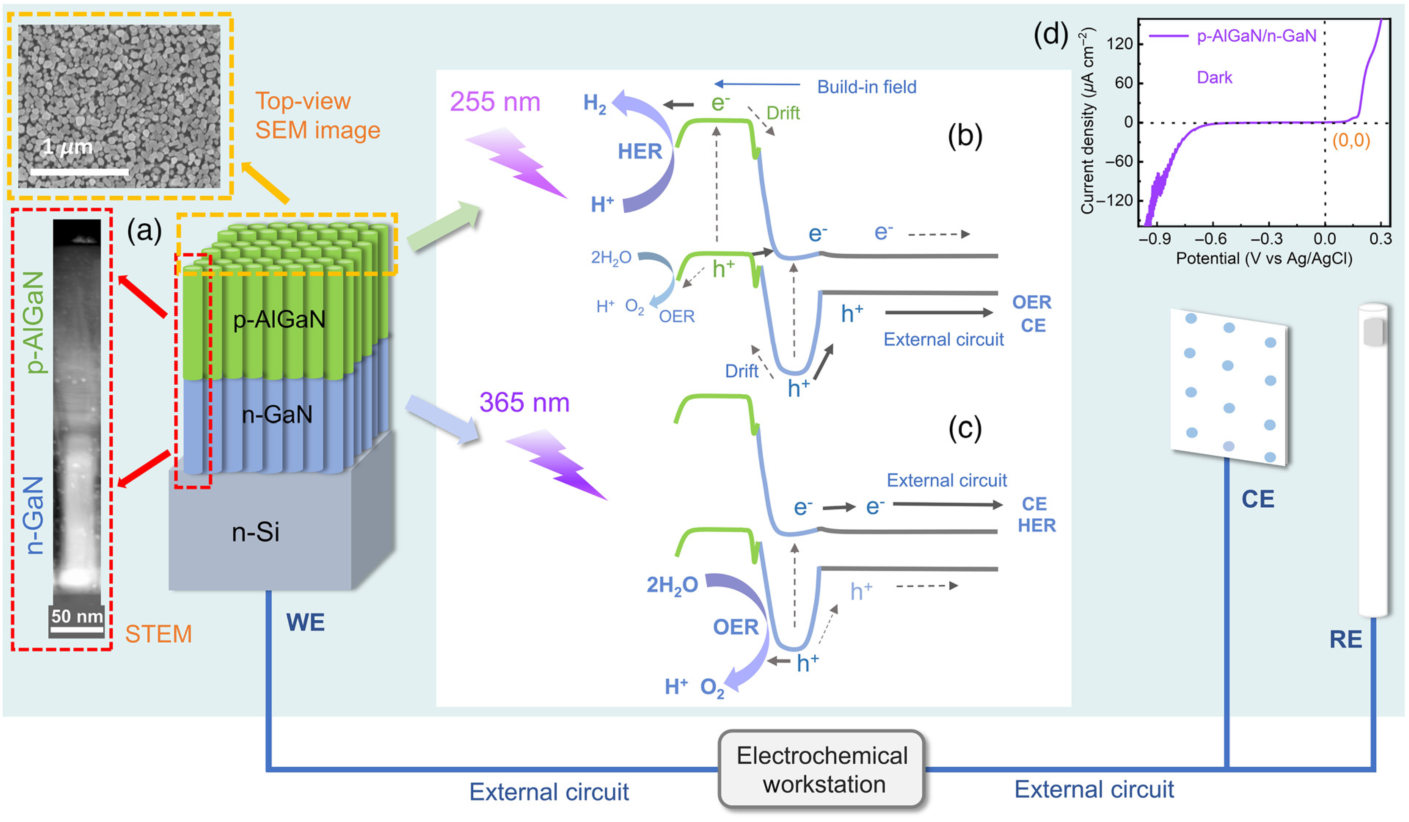 这项研究工作通过光吸收体结构和表面动力学的精确控制,验证了AlGaN基纳米线来构建多功能PEC UV PDs的可行性,为进一步探索高性能光电器件提供了多策略协同优化的设计方案。