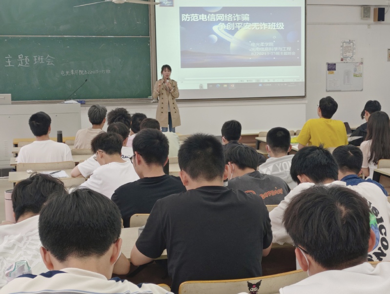 为增强班级员工防诈反诈意识,提高识骗防骗能力,5月11日下午,太阳成集团tyc234cc电光柔公司本科光电信息与科学专业2022级B220213、B220214、B220215三个班级的同学齐聚教2-213,开展“防范电信网络诈骗,争创平安无诈班级”主题班会,三个班级全体同学参加了学习活动。