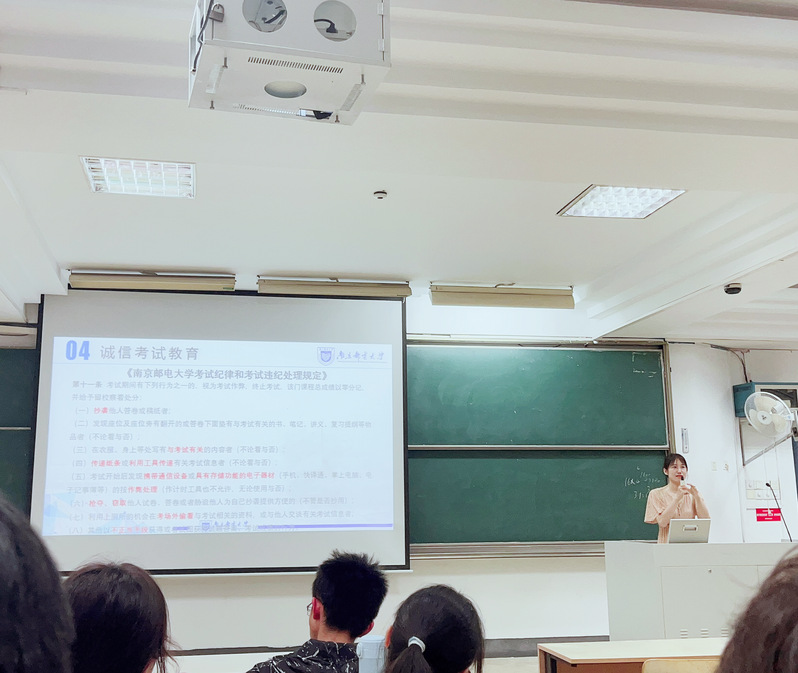 李华婷老师强调了期末考试相关事宜,希望同学们在把握宝贵时间,制定合理的复习计划,积极备考,掌握考试方法,适应大学考试。她重点强调了“严肃考风考纪,诚信应考”这一基本原则,并再次研读了《南京邮电大学员工手册》中有关于作弊处分的详细内容。随后,由同学签署并朗读诚信考试承诺书,再次强调诚信考试的重要性与必要性,同时预祝同学们学业顺心。