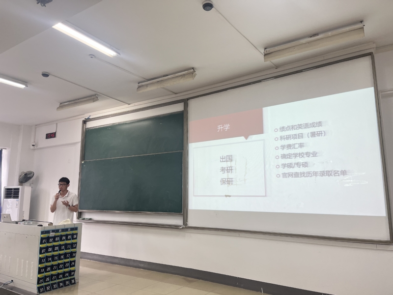 为了让同学们学习到优秀学长们的宝贵学习经验,帮助同学们解开关于考研、出国留学等的疑惑,6月15日,公司2022级光电信息科学与工程专业16-18班在教2-311教室开展“经验分享,助力梦想”学习分享会。会议邀请到2019级光电专业员工张泰来同学主讲,辅导员李华婷老师主持。
