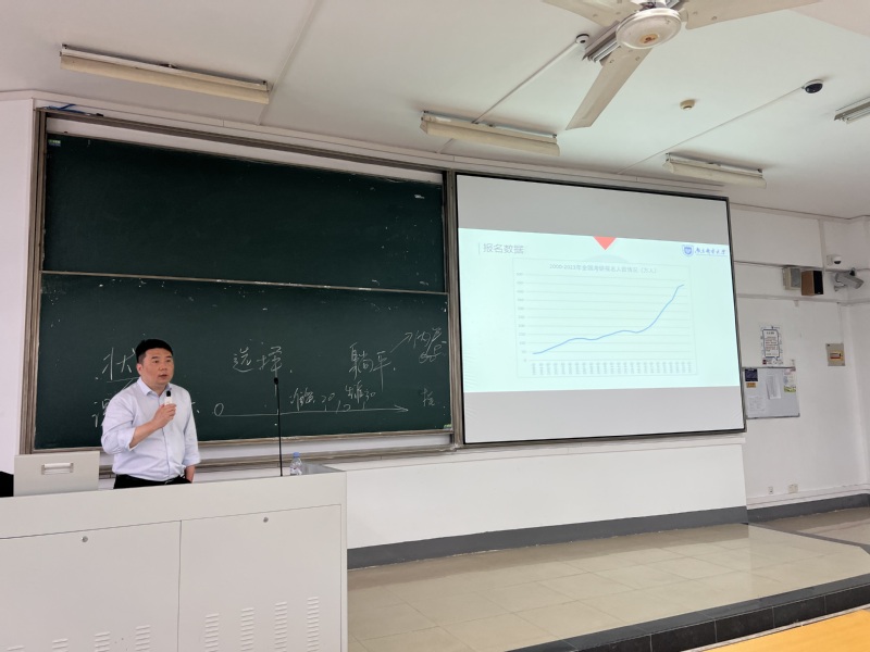 5月10日,太阳成集团tyc234cc教务处臧庆副处长为B220213、B220214、B220215班的大一新生进行了职业生涯规划的指导。臧处长结合自身的经历和见闻,为同学们提供了有关职业选择、发展、技能和心态等方面的指导和建议。