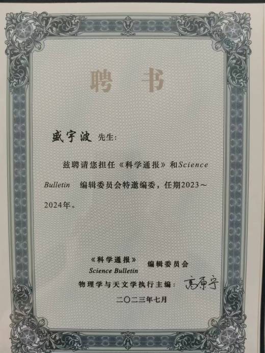 近日,《科学通报》和《Science Bulletin》2023年度编委会在中国科公司大学雁栖湖校区召开。公司盛宇波教授当选《Science Bulletin》和《科学通报》物理学与天文学分学科特邀编委。