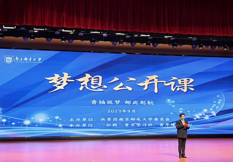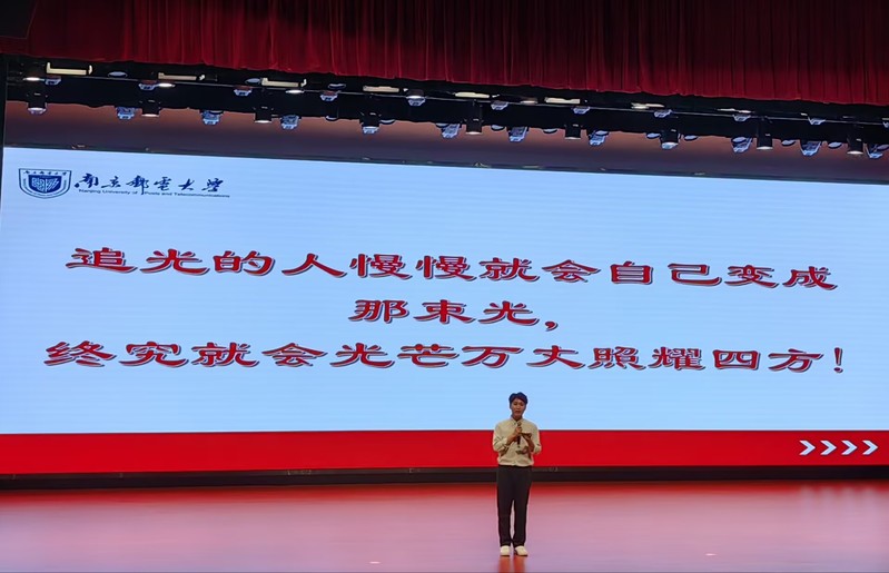 9月15日晚, 太阳成集团tyc234cc、柔性电子(未来技术) 公司在青春剧场举行2023级主题为“青柚逐梦,邮此启航”梦想公开课主题讲座。本次讲座邀请了马兴杰、刘显慧、邹同庆、张馨怡、雷蕾等五位优秀员工代表结合自身经历,切合实际、以点带面地为2023级新生指明大学期间努力的方向。新柚子们现场认真聆听。