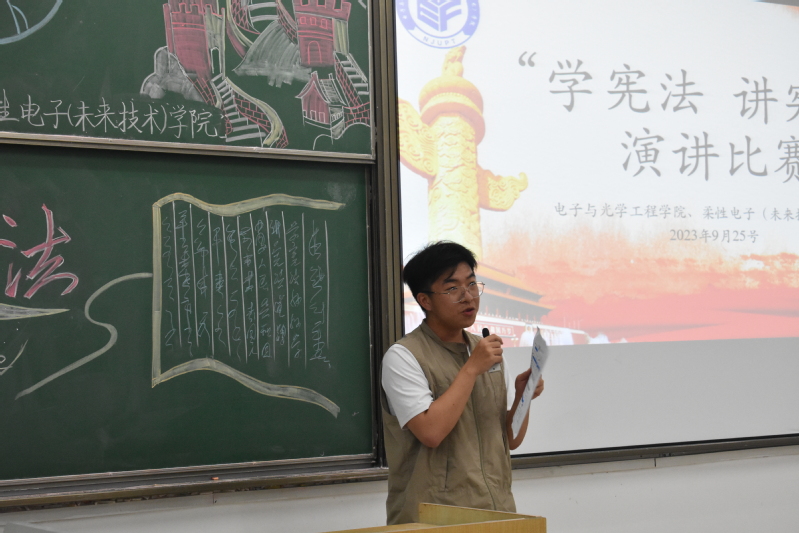 参加决赛的8位选手都是各班级的精英代表,他们精心准备后胸有成竹、蓄势待发。本次比赛采取以个人为单位,伴随着主持人详细介绍比赛规则之后,第一位选手龚超,用铿锵有力的演讲,充满激情、富有活力,表达了他对宪法的热爱和拥护。第二位上场的吴迪同学,以“宪启万民,法兴国邦”为题目,她结合党的二十大讲述中国特色社会主义的优势等,再由此展开对宪法的意义、重要性的讲述,倡导同学们学习宪法,遵守宪法并表达了她对宪法的赞颂……在比赛中,选手们围绕“学宪法·讲宪法”这一主题,结合自身实际,从不同角度阐述了宪法的重要性和意义。他们有的讲述了自己在日常生活中如何遵守宪法,有的阐述了宪法的原则和精神如何指导自己的学习和生活。选手们的演讲内容丰富、生动有趣,引发了观众的阵阵掌声。