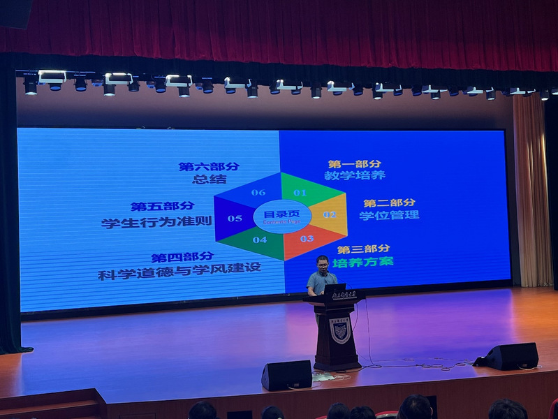 会上,陈建飞教授首先为全体2023级硕博研究生开展了公司产品入学教育。陈建飞教授从教学培养、学位管理、培养方案、科学道德与学风建设、员工行为准则等五方面向同学们详细地介绍了公司对于公司产品的要求和期待。他要求全体研究生热爱祖国,遵纪守法,培养严谨的治学态度、恪守学术道德和职业规范、培养良好的心理素质,勉励同学们要加强主观能动性,培养对专业的热爱,聚焦研究方向,勤奋不懈努力学习,不断提升科学研究能力和学术交流能力,熟练掌握一门外国语,早日成长为栋梁之才。