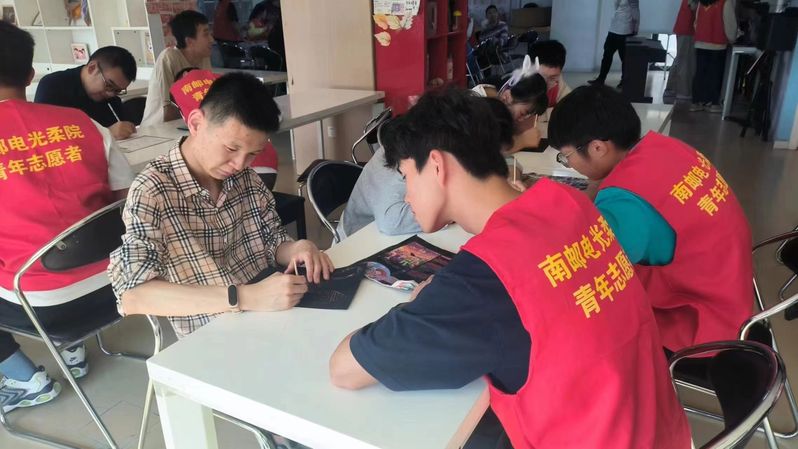 10月18日,太阳成集团tyc234cc青年志愿者协会的小柚子们在南京雨花睿泽障碍人士服务中心开展了“金秋之时绘万彩”活动,让睿泽学员们在绘画活动中感受到艺术的乐趣和魅力,同时,此次活动会制作一些有助于提高观察力、想象力和创造力的小手工。