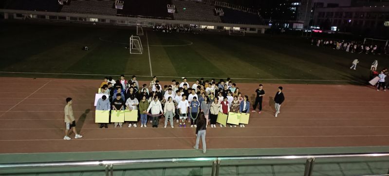 在白天,天气千变万化,时而炎阳炙人,时而阴云风起,方阵成员挥洒晶莹的汗水,忍受躁动的凉风,听从老师的指挥,站在属于自己的位点,练习走位以及表演动作;夜幕下,借着主席台下的灯光,艳丽的旗帜和牌板、孜孜不倦的身影,鲜活了整个操场,生气勃勃。
