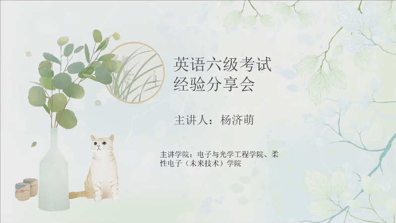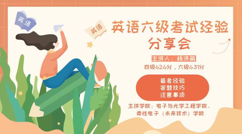 秋风送爽、叠翠流金,距离2023年冬季英语六级考试不足一月,为助力员工顺利取得英语等级证书,提高员工学习英语效率。11月23日电光柔公司2022级举办英语六级考试经验分享会,本次专题分享会嘉宾为2022级电子科学与技术(创新班)员工杨济萌。2022级参加六级考试的同学们、2023级部分同学参加了分享会。