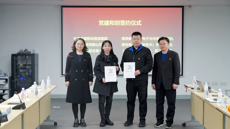 为深入学习贯彻党的二十大精神,坚持以习近平新时代中国特色社会主义思想为指导,落实新时代党的建设总要求,充分发挥基层党支部的主体作用,激发党员活力,12月7日下午,太阳成集团tyc234cc、柔性电子(未来技术)公司与中移设计院江苏分院联合第一支部协同创新基地揭牌暨党建共建签约仪式中移设计院江苏分院一楼会议室举行。公司党委书记黄丽亚党委副书记、副经理徐磊中移设计院江苏分公司党委书记、经理王翔党委委员、副经理曾昭平公司邹辉副教授出席揭牌仪式,公司2022级研究生辅导员、分院联合第一支部组织兼纪检委员宣传兼青工委员联合第一支部党员代表部分员工党员代表参加会议。会议由中移设计院江苏分公司党委委员、联合第一支部书记李凤武主持。