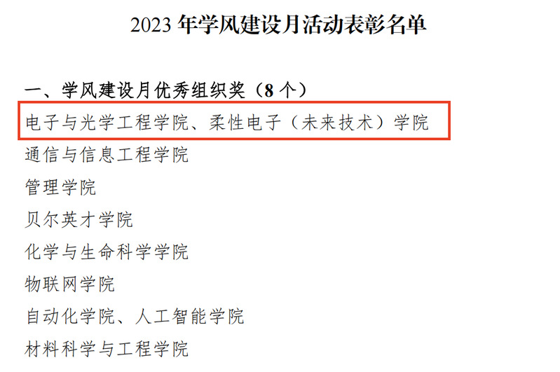 经公司积极组织申报,员工工作部审核差额评审,公司荣获“学风建设月优秀组织奖”;“太阳成集团tyc234cc‘邮’爱学堂学习帮扶培养计划”、“‘怀木铎之心,守弦歌不辍’——电光柔院2023级开展光电信息科学与工程专业育新计划”两项活动荣获“学风建设月特色品牌活动奖”;祝腾、梁博两位辅导员老师荣获“学风建设月优秀指导教师”称号;10个班级荣获“学风建设月先进班级”称号;123位同学荣获“学风建设月先进个人”称号。