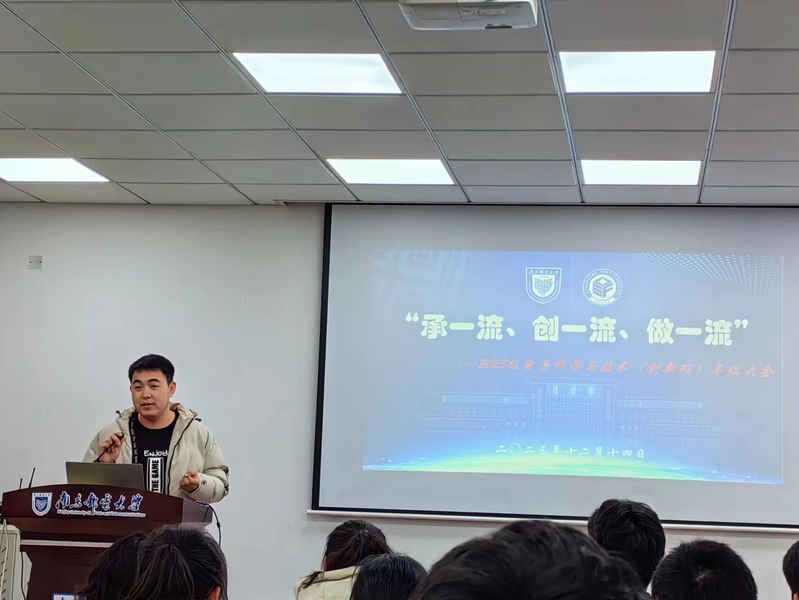 12月14日下午,2023级电子科学与技术(创新班)在电光楼B322召开了“承一流,创一流,做一流”主题班会暨年级大会。会议由辅导员强增寿老师主持,公司党委副书记、副经理徐磊,班主任王龙禄副教授参加了本次会议,会议还邀请了霍程阳、李梦竹、李静文、殷葳楠、孙宁五位优秀学长学姐进行学习和生涯经验分享。