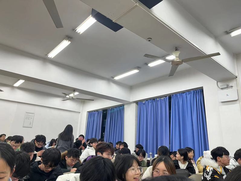 年级大会包括学期日常工作管理、学期成长发展、学期案例分享、诚信考试教育、其他通知要求、辅导员/班主任面对面测评等方面。会议伊始,李老师和同学们进行互动交流,展示了同学们的生活照片、实验室照片、团建照片等,和同学们一起回忆2023年的快乐瞬间,活跃了年级大会的氛围。之后年级大会正式开始,在日常工作管理方面,李老师展示了本学期违章电器使用情况,对员工们进行教育提醒,并强调了晨跑合格的重要性。在学期成长发展方面,李老师向同学们总结了目前的党团建设和班级建设,对优秀班级以及员工进行表扬,同时也对有学业预警的员工给予提醒以及帮助。在学期案例分享方面,李老师带领同学们分析了各班上学年的平均绩点、六级通过率等,分析了不同绩点所对应的企业、薪资、以及考研的初试分数以及录取比例,督促员工们认真学习,珍惜韶华。在诚信考试教育方面,李老师以有趣的举例视频展开,视频里搞笑又显眼的作弊行为让同学们印象深刻。最后,李老师还邀请了各班的班主任老师,和同学们一起进行面对面测评,测评结束后各班进行了合影留念。
