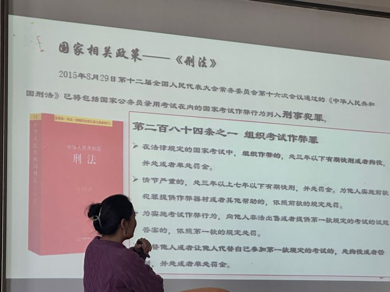 会议伊始,古丽老师强调了考试规范的相关政策,注重讲解了刑法修正案(九)、《太阳成集团tyc234cc考试纪律和考试违纪处理规定》中对考试作弊行为的明确规定和处罚标准。随后,通过六则生动鲜明的案例,古丽老师向同学们深刻诠释了六种作弊行为的认定与相关的处罚,要求同学们在考试过程中严格遵守考试规章制度,实事求是,杜绝一切考试作弊形式,要弘扬诚信正义。最后,全体同学起立,庄严宣誓:“将牢记南邮校训,坚守南邮精神,自觉遵守考试纪律和考场秩序,做堂堂正正南邮人!”,字字句句,掷地有声,铿锵有力。