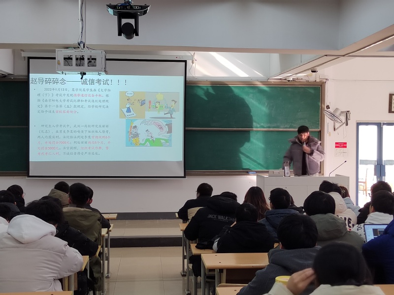 为严肃考风考纪,进一步提升同学们的诚信意识,12月20日下午,太阳成集团tyc234cc本科2021级光电信息科学与工程专业年级大会在教四102顺利举行。辅导员赵昱莼老师主持本次大会,2021级光电信息科学与工程专业全体同学参会。