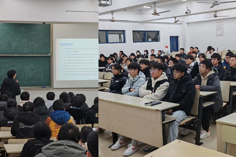 梁博老师从期末复习与考试、诚信教育、安全教育、宿舍管理、学期回顾、等方面进行了发言。首先,梁老师向同学们说明期末备考与诚信考试的重要性,讲解了备考的方式方法,诚信考试的相关要求,以及在考试期间的注意事项。引导同学们科学备考,诚信应考,尽己所能勇创佳绩。之后,梁老师从安全教育、宿舍管理两方面进行了讲解,从多角度告诫同学们要提高安全意识,遵守宿舍管理规定等事宜。然后,梁老师带领同学们对本学期进行了回顾,展示了同学们的军训照片、活动照片等内容,活跃了会场氛围。最后,梁老师从“目标与规划”“良好心态”“锻炼身体”等方面提到了几点嘱咐,希望同学们在大学期间全面发展,不断完善自己。