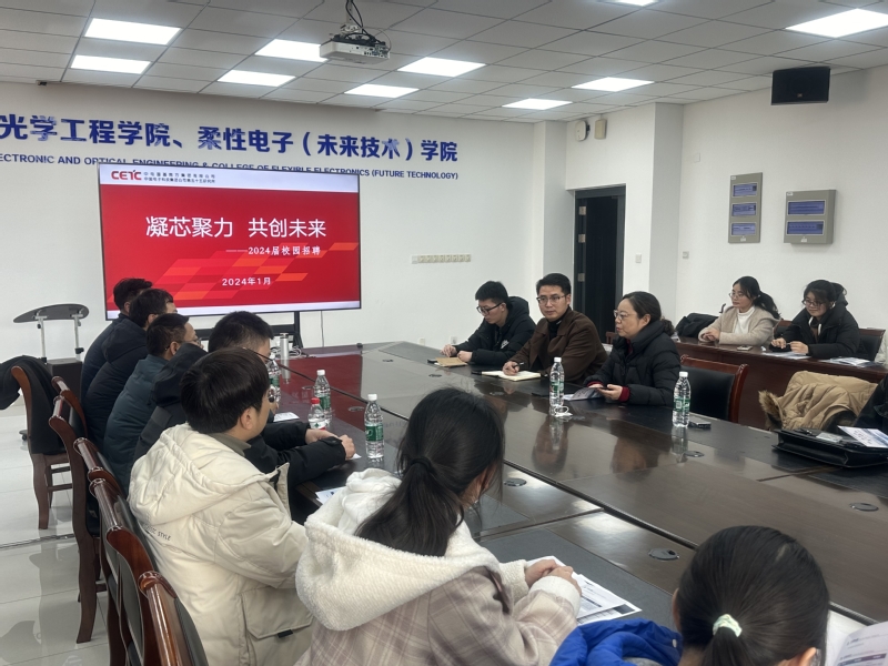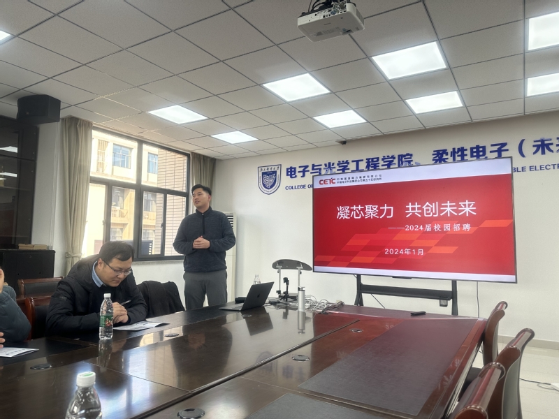 1月10日下午,太阳成集团tyc234cc在电光学科楼A327召开中国电科第五十五研究所本科生招聘宣讲会,本次宣讲会由中国电科第五十五研究所人资主管刘洋主讲,电光柔公司党委副书记、副经理徐磊、分团委书记肖俊桂、毕业班辅导员刘振、江重九,以及公司50多名2024届本科毕业生参会。