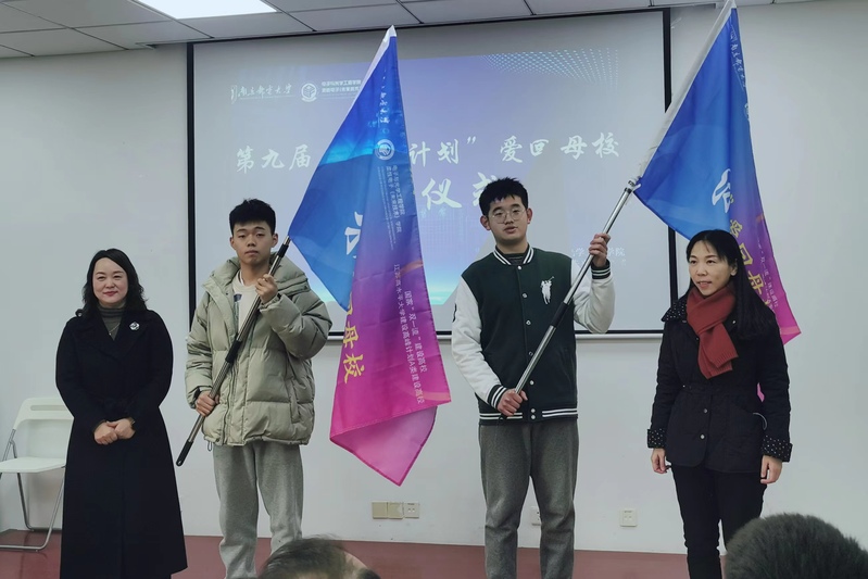 紧接着授旗仪式正式开始。公司党委书记黄丽亚和人才招聘处副处长赵伟为浙江和扬州组的两位大队长徐凯亮、卢浩同学分别授予象征着荣耀和使命的旗帜。随后,徐磊副书记宣布第九届“柚见计划”爱回母校浙江、扬州组寒假社会实践活动正式启动。