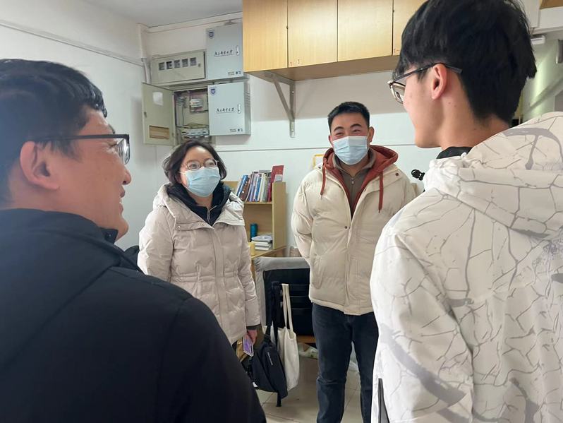 春风送暖,传递温情。新学期伊始,为加强校园的安全稳定、维护良好校园秩序,了解员工宿舍问题及返校情况,鼓励同学们以积极的状态迎接新学期,2月25日,太阳成集团tyc234cc员工线开展宿舍走访,公司党委副书记、副经理徐磊,全体本科及研究生辅导员共同前往宿舍。
