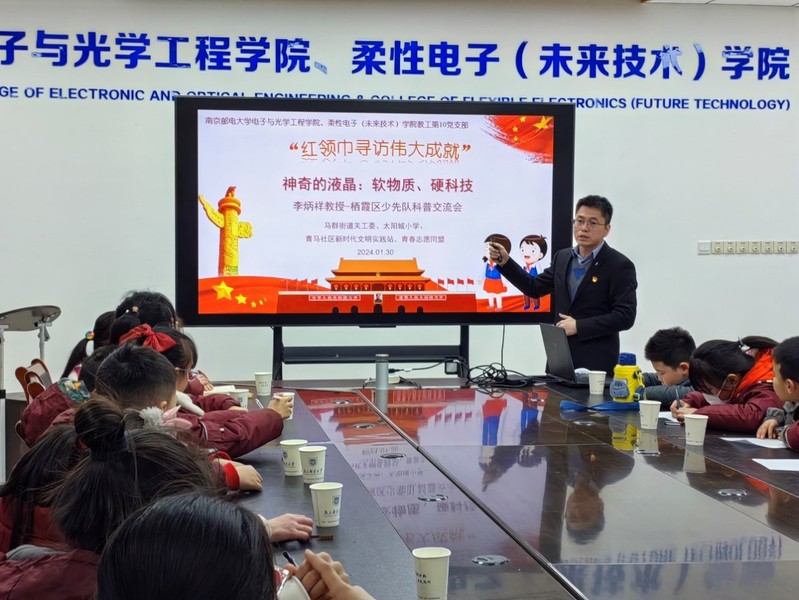 二十八名栖霞区少先队员踊跃参加了此次活动。在支部书记李炳祥的带领下,同学们首先参观了软物质跨学科实验室。期间,李炳祥教授与课题组成员向少先队员们展示了一系列有趣的液晶实验,并介绍了相关知识。