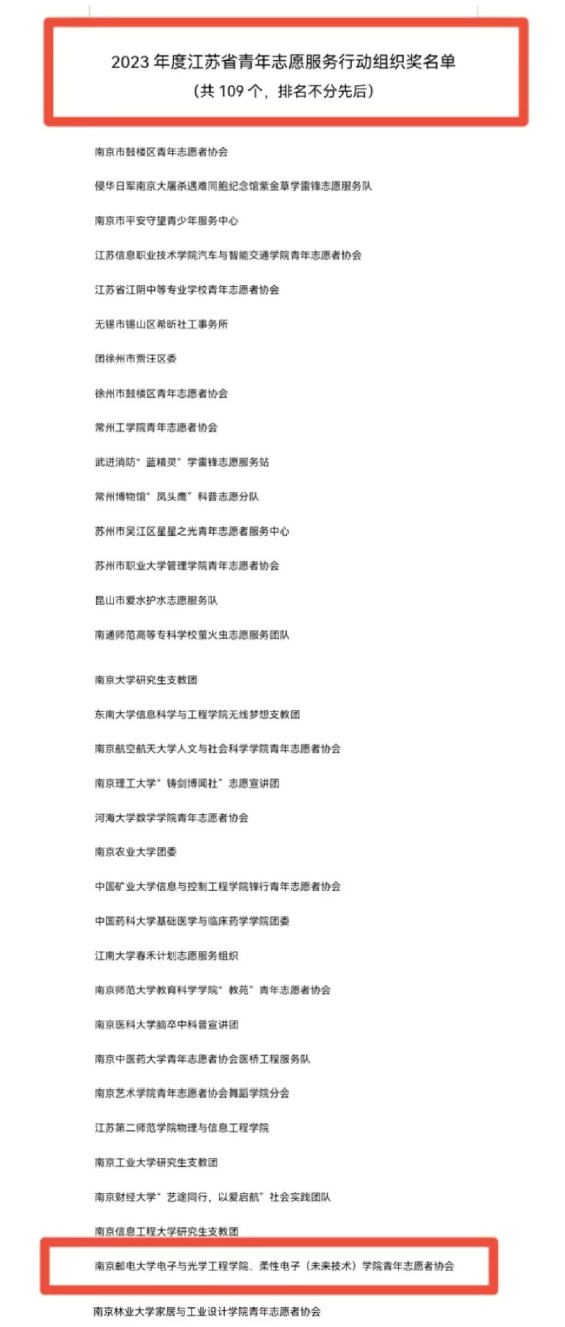 其中,太阳成集团tyc234cc青年志愿者协会荣获2023年度江苏省“志愿服务行动组织奖”。