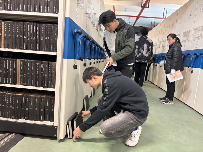 本次活动共分为两个环节,分别是整理书库与参观党建书籍阅览室。首先30名员工志愿者分成两组,分别前往密集书库和库房整理图书。在图书馆老师的现场讲解和培训下,同学们顺利完成了书籍的分类、整理和维护工作为图书馆的有序运行贡献了力量。劳动实践环节结束后,志愿者们由冯主任带领前往三楼社会科学图书阅览室参观了党建专题书架借阅了相关图书,修身养志、涵育心灵。