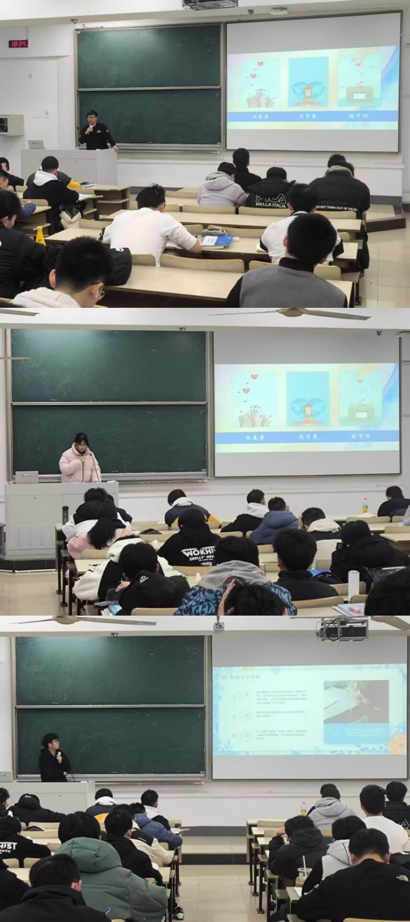 刘一凡同学对同学们在寒假期间参与的志愿活动进行了概述,在“爱回母校”“线上云支教”“返家乡”等各项志愿活动中都有我们同学的身影,他们在这些活动中都贡献了自己的力量,展现了属于南邮的青春风采。白春雷同学、马宇晨同学和张宇琪同学分别讲述了在志愿服务过程中的经历和感悟。在一件件小事中,他们深切体会到志愿服务的魅力,感受到由于付出而收获的欢乐。吴馥宇同学向大家介绍了参与志愿服务活动的方法和渠道,讲述了自己在过往志愿活动中的精彩经历,自己的能力也在这些活动中逐步提升。
