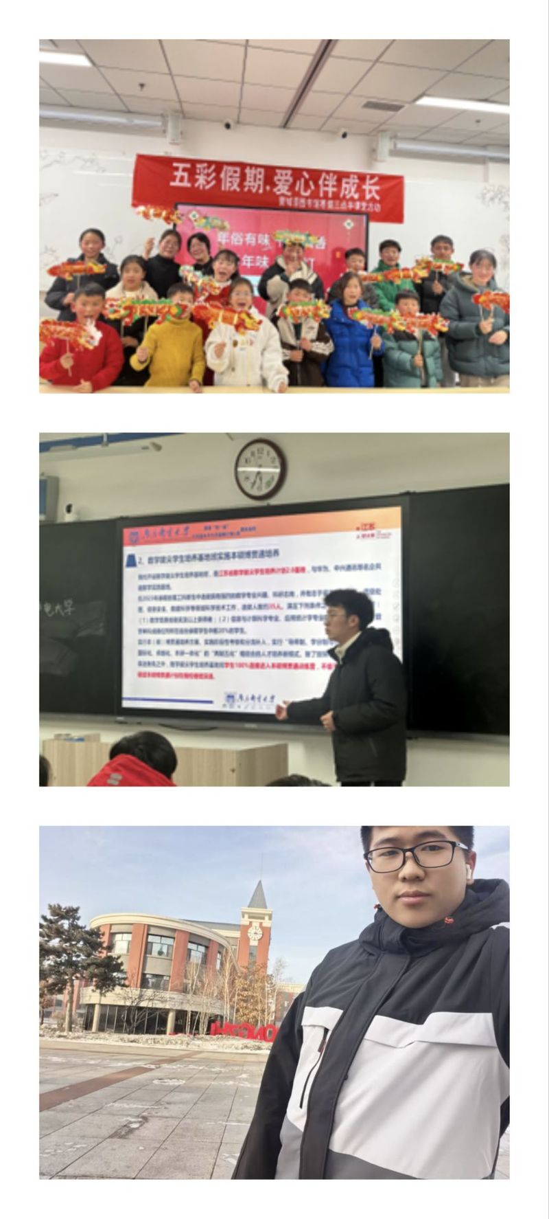 在“爱回母校”活动中,同学们以“摆渡人”的身份重新回到高中母校,宣传“自强不息、信达天下”的南邮精神,向高考学子们介绍了南邮的专业特色,为他们传授经验,加油鼓气。同学们通过“一起云支教”活动带领留守儿童们开展“一起快乐阅读”“一起健康运动”“一起云讲堂”等活动,共同助力青少年儿童阳光成长,传承优秀文化,赓续中华文脉。为响应构建和谐社会的号召,提高老员工的社会关注意识和社会服务意识,同学们主动深入基层锻炼,参与“返家乡”活动,为家乡人民服务,为绚烂青春添彩。此外,还有同学们充分运用自己所学专业常识,将理论知识和生产实践相结合,投身于实践实习中,用所学知识为家乡建设添砖加瓦。