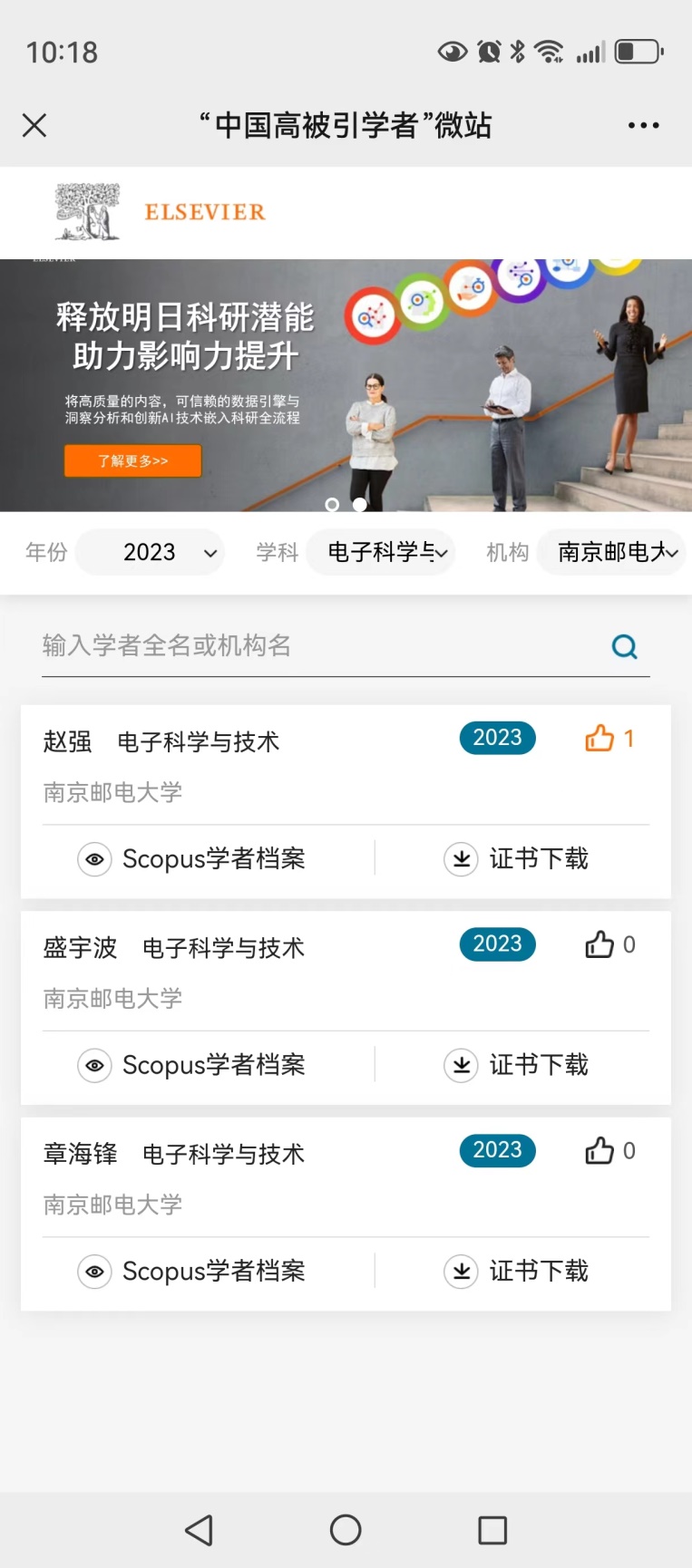 2024年3月27日,全球性信息分析公司爱思唯尔(Elsevier)正式发布了2023“中国高被引学者”(Highly Cited Chinese Researchers)榜单。南邮共有8名教师入选。其中公司赵强教授、盛宇波教授、章海锋教授3名教师入选。