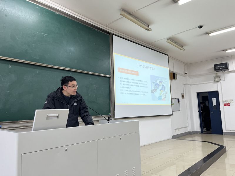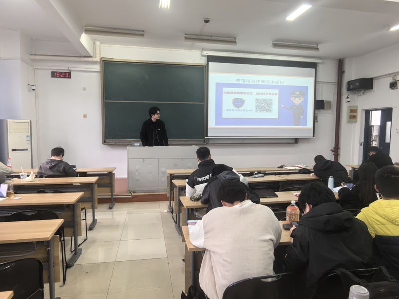 为了提高同学们反诈安全意识,有效遏制电信诈骗情况,3月27日,2023级研究生组织了以安全和反诈为主题的班会,由各班班长主讲宣传,各班同学积极参与。